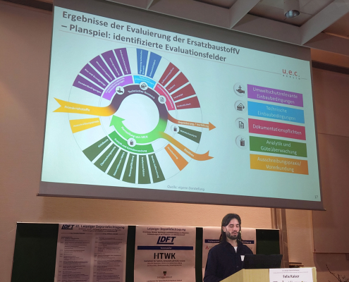 Am 11.09.2025 stellten wir auf der Messe NordBau in Neumünster im Rahmen der Fachveranstaltung „Aktuelle Entwicklungen im Abfallrecht“ der Entsorgergemeinschaften Nord die Zwischenergebnisse des Projekts zur Evaluierung der Ersatzbaustoffverordnung vor. Im Mittelpunkt standen die Ergebnisse des 2025 durchgeführten Planspiels, insbesondere die erarbeiteten Lösungsansätze, um Hemmnisse beim Einsatz von mineralischen Ersatzbaustoffen abzubauen sowie unsere Handlungsempfehlungen für eine Novellierung der Ersatzbaustoffverordnung an das Bundesumweltministerium.
